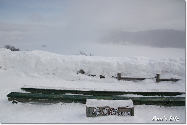 來到摩周湖的時候剛好又颳起大風雪,不知道溫度落在幾度,只覺得比在阿寒湖時還更冷,