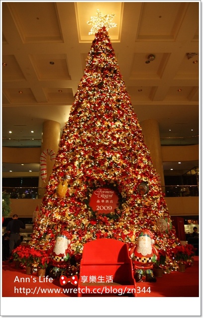azie餐廳就在一樓,因應聖誕節將要來臨,中央豎立了一棵喜氣的紅金色巨大聖誕樹,