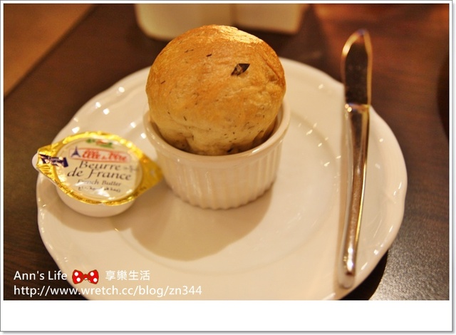 一旁附上的佐醬是奶油,烤的酥香的香料麵包有獨特的香氣,