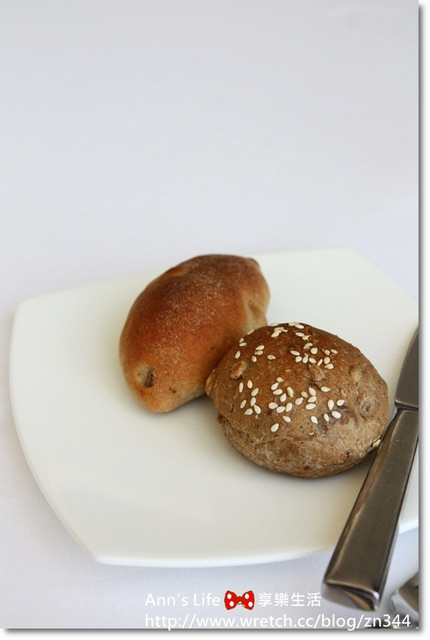 今日的餐前麵包是核桃麵包及全麥麵包,我們都覺得亞緻的麵包做得好,從早上在異料理用早餐就可窺知一二,