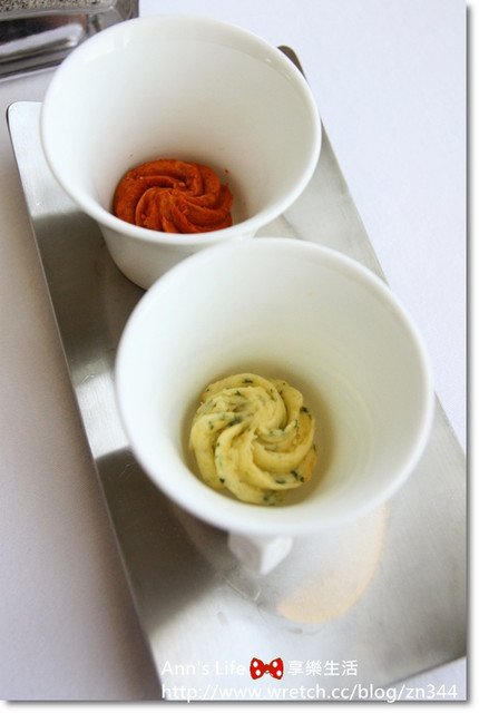 幫麵包加分的是特製蒜味奶油及風乾番茄,蒜味奶油不必講,奶油搭配素麵包一向最合調,