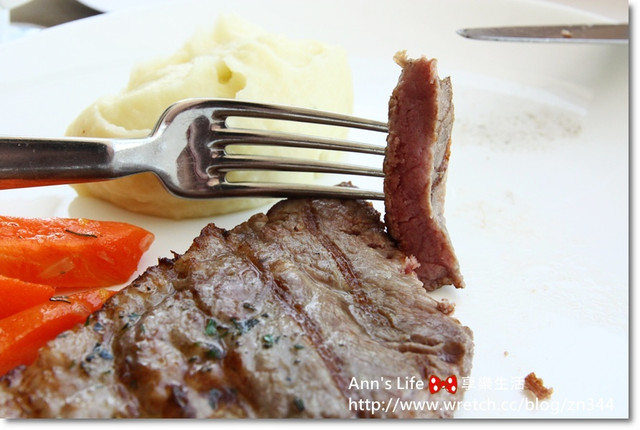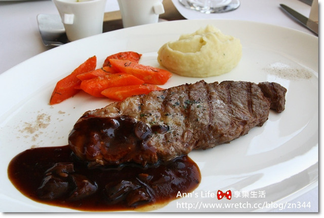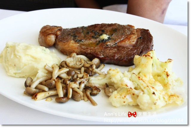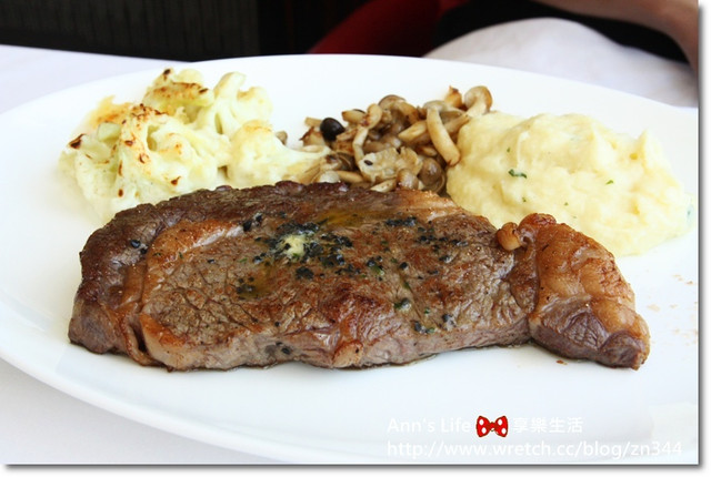 套餐的沙朗配菜無法選擇較為簡單,蒜味洋芋泥相當綿密完全吃不到顆粒且奶油香味很得宜,J大讚一點都不輸他很愛的茹絲葵洋芋泥,