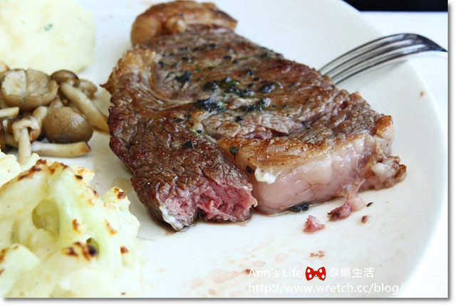 原本也想點3分熟,但服務人員建議我因為沙朗的油花分佈在上方,若是點選3分熟恐怕筋較難咬斷,也可能會覺得過於油膩,