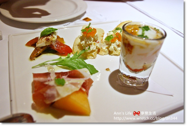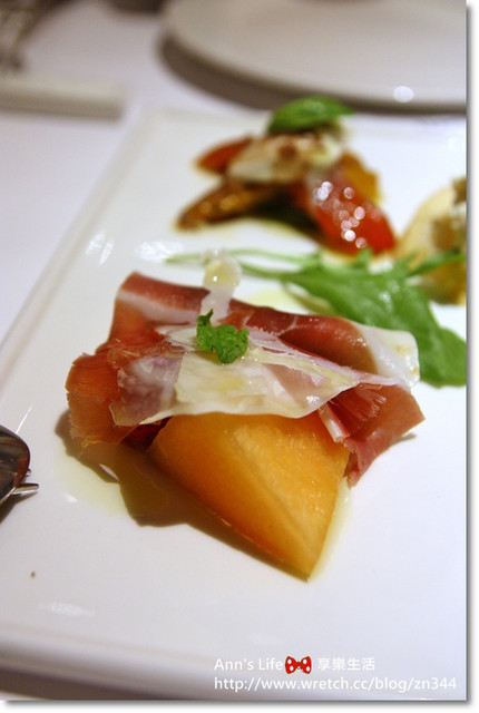 義式帕瑪火腿佐季節水果襯蜂蜜黑松露,醃製過的生火腿柔軟細緻,