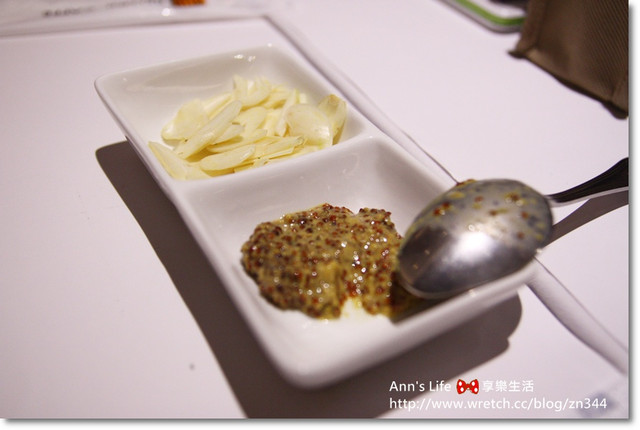 開胃菜當然填飽不了肚子,當waiter送上蒜片和芥茉籽醬的時候就開始讓人摩拳擦掌了,