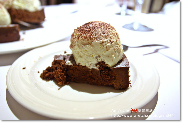 這巧克力蛋糕可不是布朗尼,而是接近一整塊巧克力塊般札實又香濃綿密的慕斯?