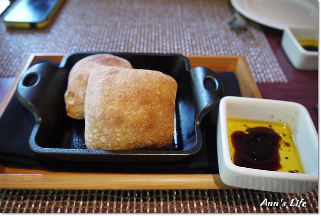 麵包的沾醬是油醋醬,有絕妙的酸香滋味,清空盤子後waiter還貼心詢問是否還要再續,