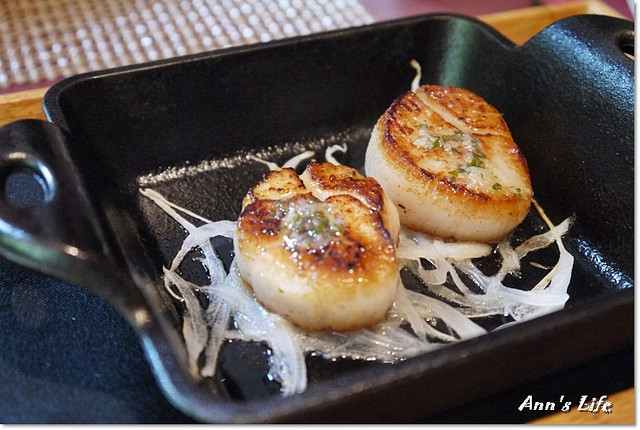 最後我們在薄切生鮪魚、煙燻鮭魚捲、鑄鐵香草干貝、