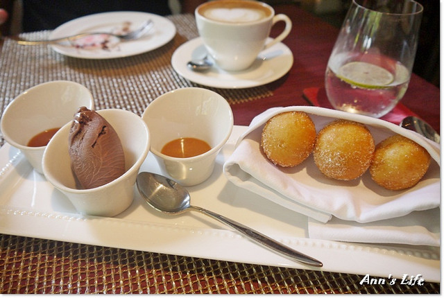 不過要不是J提議,我恐怕不會選甜甜圈,總覺得不像是高級西餐後會出現的精緻點心,