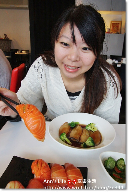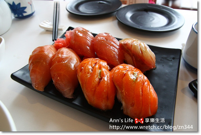 接著,先塞了一個我最愛的鮭魚握壽司入口,嗚喔 真是太銷魂、太好吃啦!