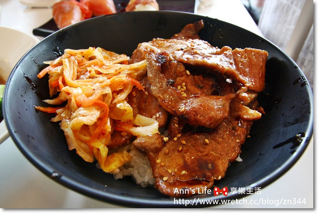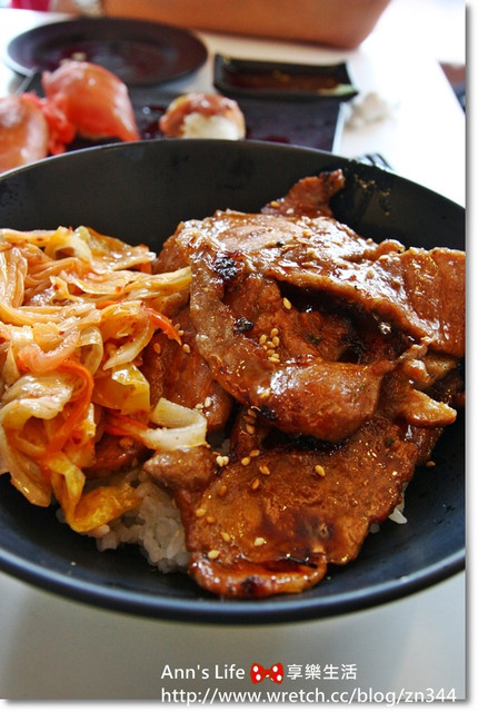 賀川燒肉蓋飯($100)香氣撲鼻而來,燒肉滿滿的一層層往上覆蓋,