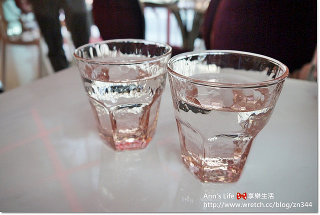 才剛送上水杯我就驚呼,透明粉色的水杯像水晶鑽石,既然要走浪漫系,當然得從頭夢幻到尾。