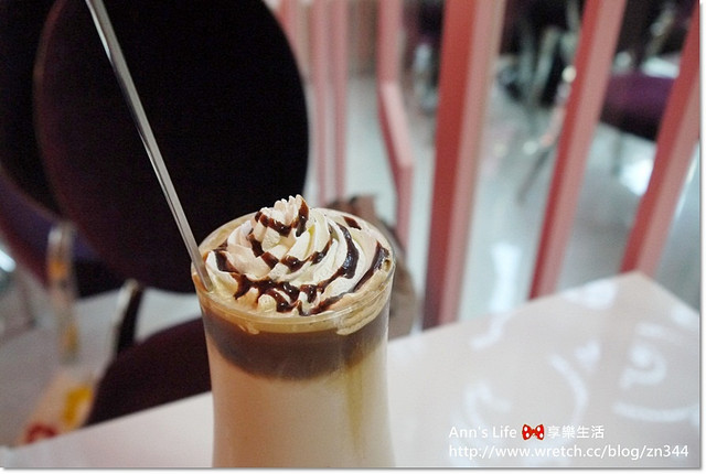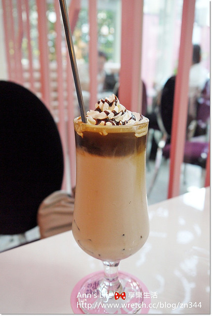 形成多層次的風味,因為頂部擠上鮮奶油,外觀也華麗許多,糊塗鈞這外貿協會一族一看到她的飲品就笑得開懷,