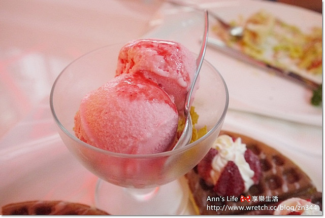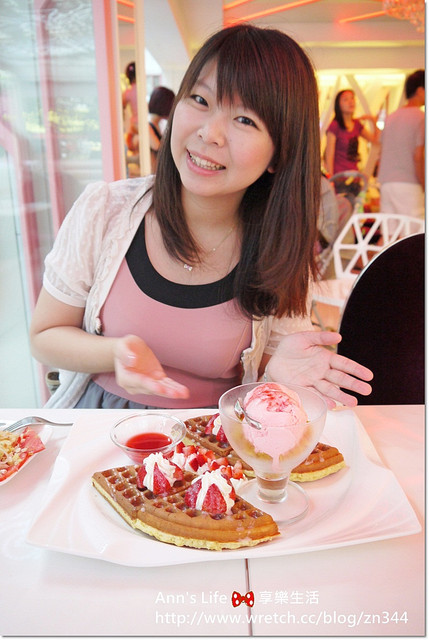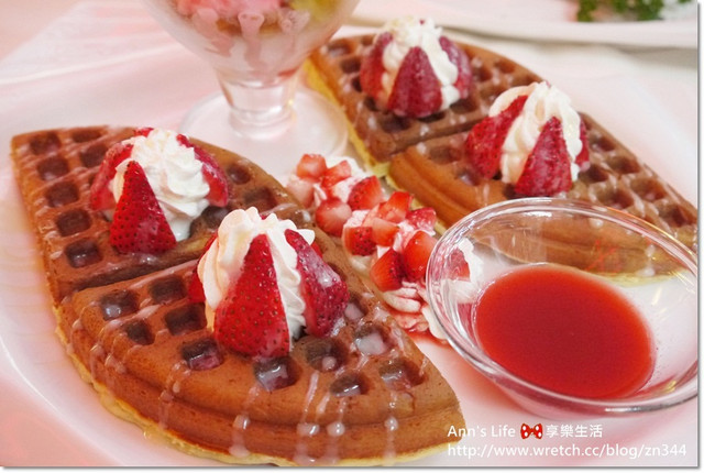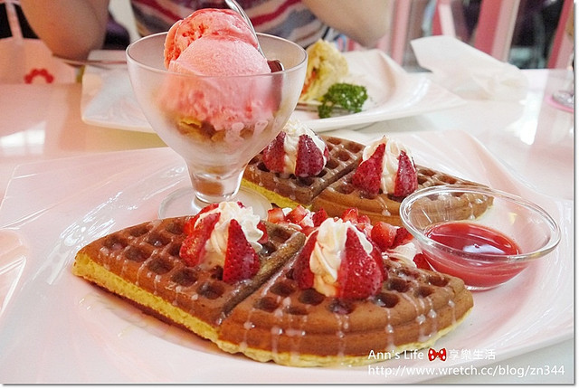 果真一片粉色的下午茶和餐廳的內裝好搭,想當短暫的公主,草莓鬆餅當然是必備!