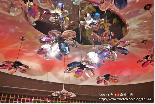 廁所的天花板超華麗,滿滿的水晶花在頭上閃耀,簡直就像少女偶像要登台作秀了。