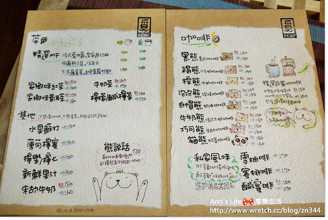 還幫每一款飲料都取了個和熊相符的名字,很有想像力!