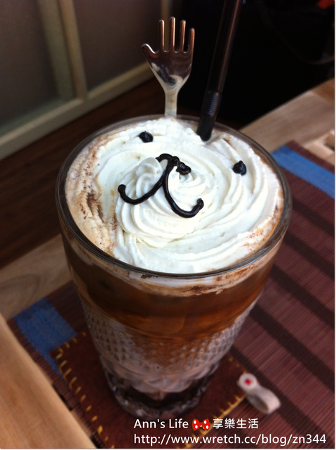上桌的時候看見老闆用奶油和巧克力醬畫上的熊臉,還有那隻手掌造型的攪拌匙,