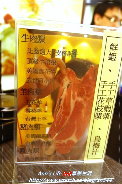 我選的是麻辣和酸菜鍋,這裡提供10種肉類吃到飽,第一輪可先點五種肉類,