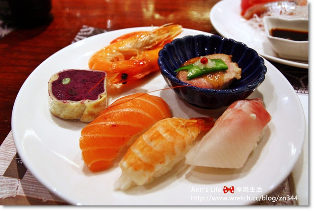就是這樣一整份有各式魚生和甜蝦的拼盤,我太貪心了,這份量可以兩個人吃我卻一個人嗑完了.....