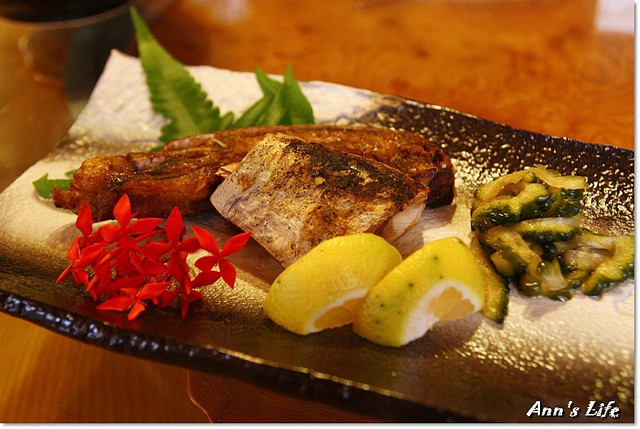 第一次吃到煎過的黑鮪魚,外型有點奇特,尤其深褐色長條狀乍看之下還以為是豬肉,