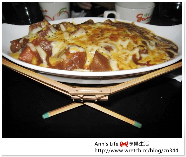 主餐我點的是焗烤牛肉飯,其實晚上的簡餐可選擇的種類並不多,