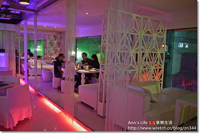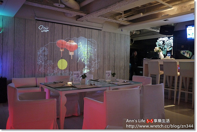 晚間的China White燈光昏暗,打在牆壁上的投影和輕音樂營造出整體的輕鬆氣氛,