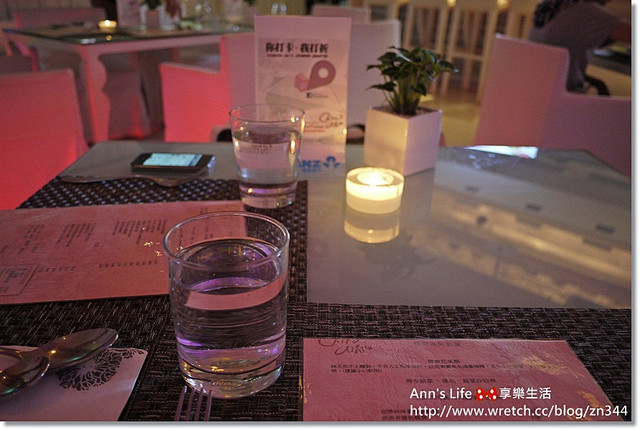 我喜歡桌上點著燭光,有浪漫的感覺,J不小心把蠟燭吹熄,正被我叨唸少了亮光的時候服務人員就趕忙來將燭火給點上,