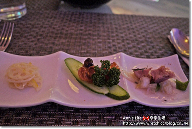 接著前菜三品一樣是走精緻路線,此時我已跟J先做好可能會吃不飽的心理建設了,