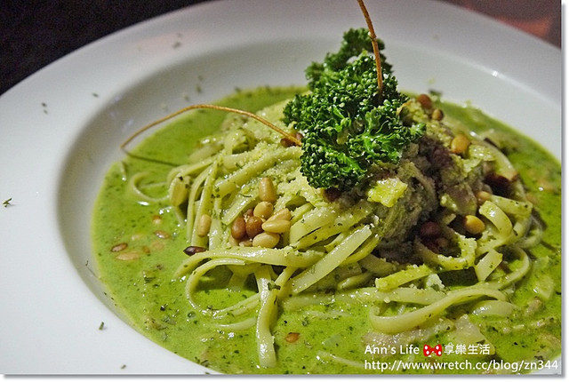 他對義大利麵要求高,這麵沒達到他的標準,我覺得尚可接受,青醬濃度夠、麵條的軟硬度也還在我的及格範圍內,