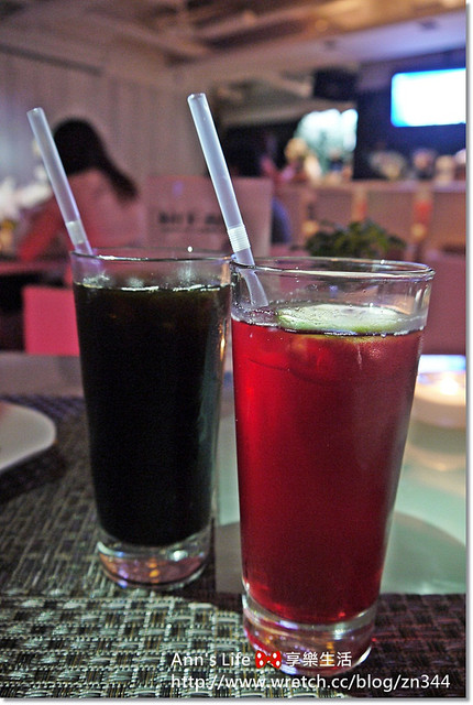 飲料我選了蔓越莓汁十分中規中矩,但J的冰咖啡則是第二波炸彈......