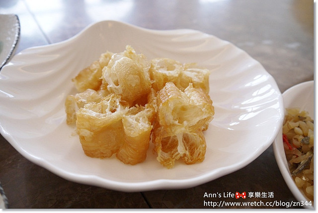一般廣東粥才會配的油條桌上也出現了,我喜歡油條浸在稀飯裡半軟半酥脆的口感,
