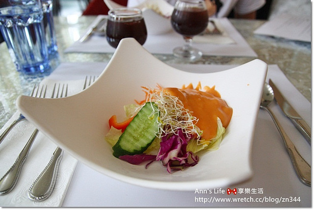 沙拉佐醬是千島,生菜的部分新鮮度很夠,吃的出清脆鮮甜,雖說特色度不足,但一個好的沙拉基本分有拿到,