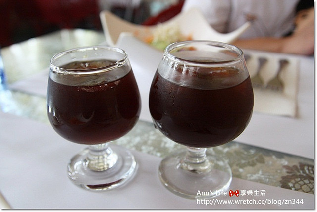 附餐飲料我到底選了什麼?忘了,應該是玫瑰花茶,記得蠻好喝一大杯讓我們又坐了好久喝不完,
