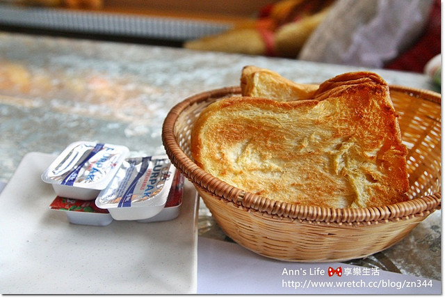 烤的超級酥脆的厚片土司,還沒嚐光視覺看就知道超好吃,完全逃不過我的法眼金睛,
