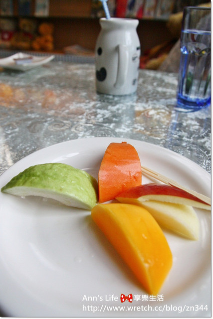 以水果為襯裝飾,甜點、水果一概滿足,只是惱人的鮮奶油實在不是我的菜。