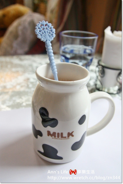 我的早餐有熱可可的選擇一定要來上一杯熱可可,杯身是可愛的乳牛身俏皮味十足,