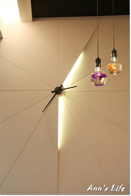 仔細一看竟然是時鐘,實在太有巧思,也讓白色的牆面擺脫原本的單調無聊。