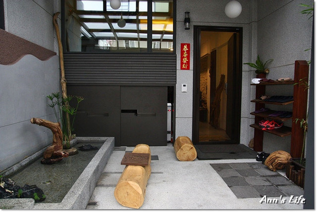 我們所住宿的房型是在第三棟,原本應該是停車位的空間,被打造成一處頗具禪意的水池長椅,