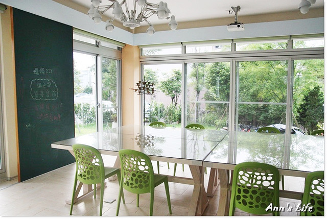 主建物前的紫色小屋,上回來的時候這裡還沒整頓好,現在卻已經擺上了桌椅和黑板,也早就已經進行過不少手工藝DIY活動,看看黑板上寫的就知道,原來這裡近期舉辦過蠟燭DIY課程,據智翔和惠珍姐的推薦,做出來的成品可是有模有樣,可惜這次來沒有開設相關課程,但我們可是參加了非常有趣的點心烘培活動喔。