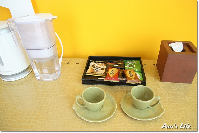 免費供應的茶包、咖啡和宜蘭餅小點心。