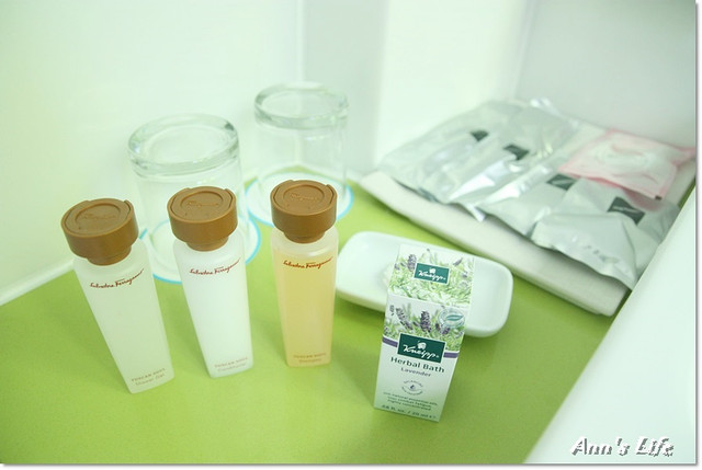 沐浴用品使用的是比較少見的高級品牌Salvatore Ferragano,還有老字號茶山房天然手工肥皂,因為有浴缸設備可以泡澡,不免俗的提供了德國薰衣草泡澡精油,不得不說薰衣草確實是很能令人放鬆的香氛呢。
