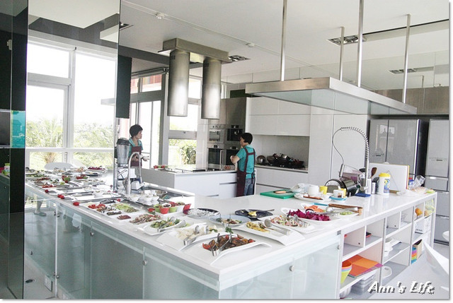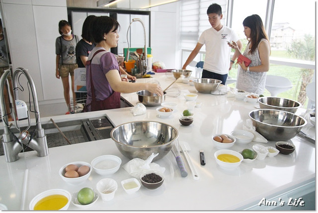我們報名參加了下午四點的甜點烘培活動,因為聽說時間會稍微delay一下,便留在房裡東摸摸西摸摸打滾,大約四點一刻的時候就接到工作人員打來房裡的電話,通知我們活動準備開始,我興奮的蹦蹦跳跳跑下樓,這才發現參加的房客還真不少,老師和工作人員忙著準備和確認道具食材,等到人全到齊後就開始進行講解了。