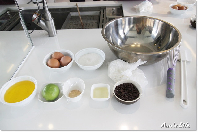 首先大家自由選定角落站好,原則上材料器具都是一間房一份,今天要做的是檸檬巧克力蛋糕,一整個就是我的菜!我真的非常熱愛DIY活動,明明不會做菜、美術也沒有天分,偏偏喜歡自己胡搞瞎弄一番,況且加上對甜點的狂熱,有機會能參加到這個並不是每天都有的課程實在太幸運啦。