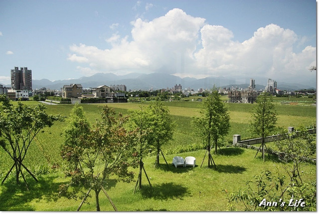 因為烤箱只有兩個,每次約需烤15分鐘左右,因此大家的作品必須輪流進烤箱,在等待的同時我們也沒閒著,跑到調色盤外頭走走,仔細想想才發現,上回來的時候好像一直沒有走到民宿後方看看,只有透過二樓Lobby的落地窗欣賞到一片稻田景色。