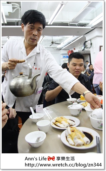 不知是不是看我們一臉外地人的臉,手腳俐落的把我們的餐具放進熱呼呼的茶水中沖洗。