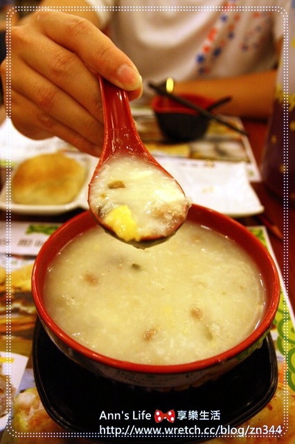 來到香港第二天一直好想吃粥,立刻就點了碗金銀蛋瘦肉粥,主要食材為鹹蛋和皮蛋及瘦肉,