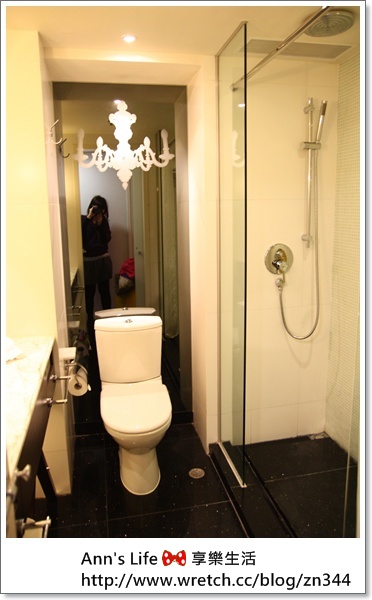 再來是一樣相當會利用空間的浴室,這裡的浴室是沒有浴缸的,有簾幕可做乾溼分離,