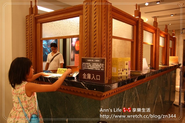 準備要進入金庫參觀囉~入口處可蓋紀念章戳,我很專注的看著小朋友用力在紙上蓋上章戳,