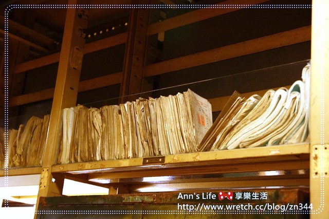 陳年的資料靜靜的擺在鐵架的最上方,早已留下泛黃、斑駁的歲月痕跡。