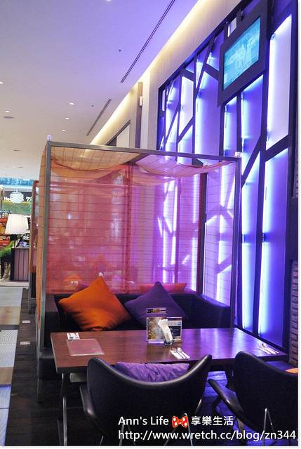 紫色、黑色和橘色是mango tree Bistro的主色調,帶有神祕和迷濛的色彩,